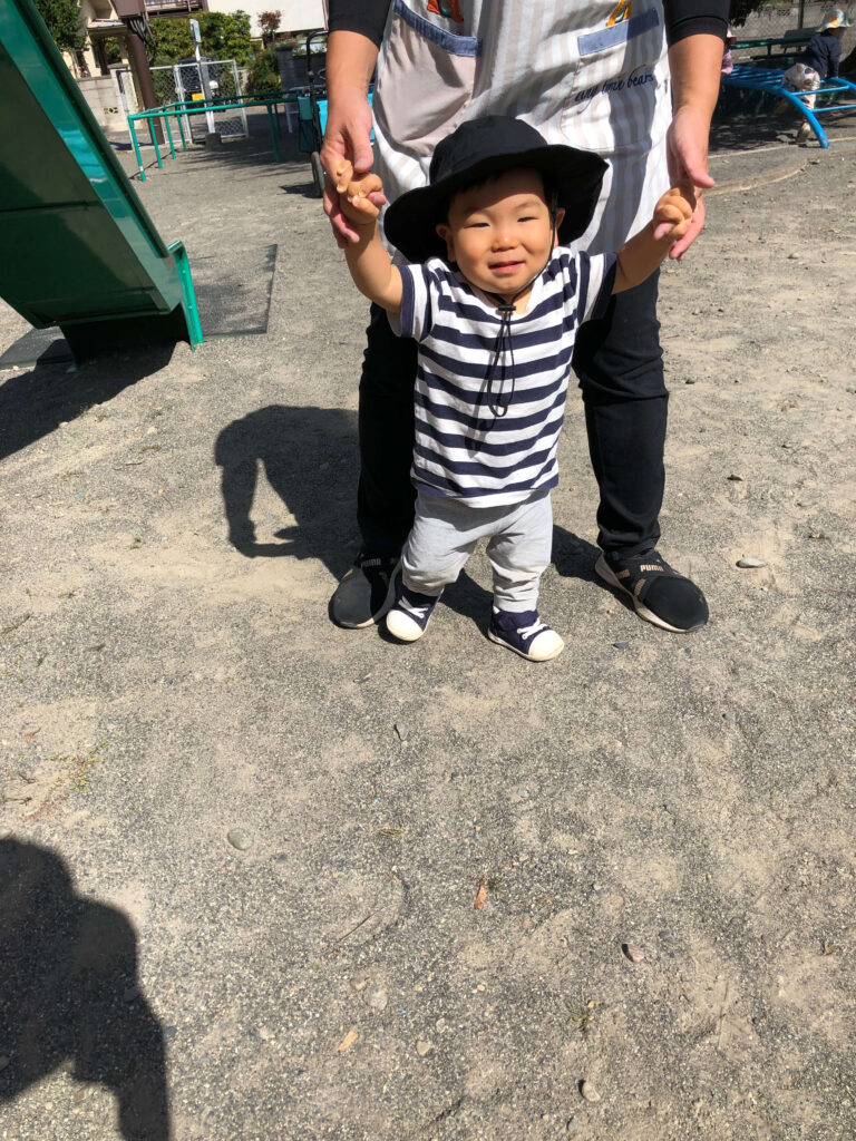 最近歩けるようになった0歳児の男の子は、保育士としっかり手をつないで、誇らしげに一歩を踏み出しています。その姿は、周囲の私たちにも温かい気持ちを運んでくれます。